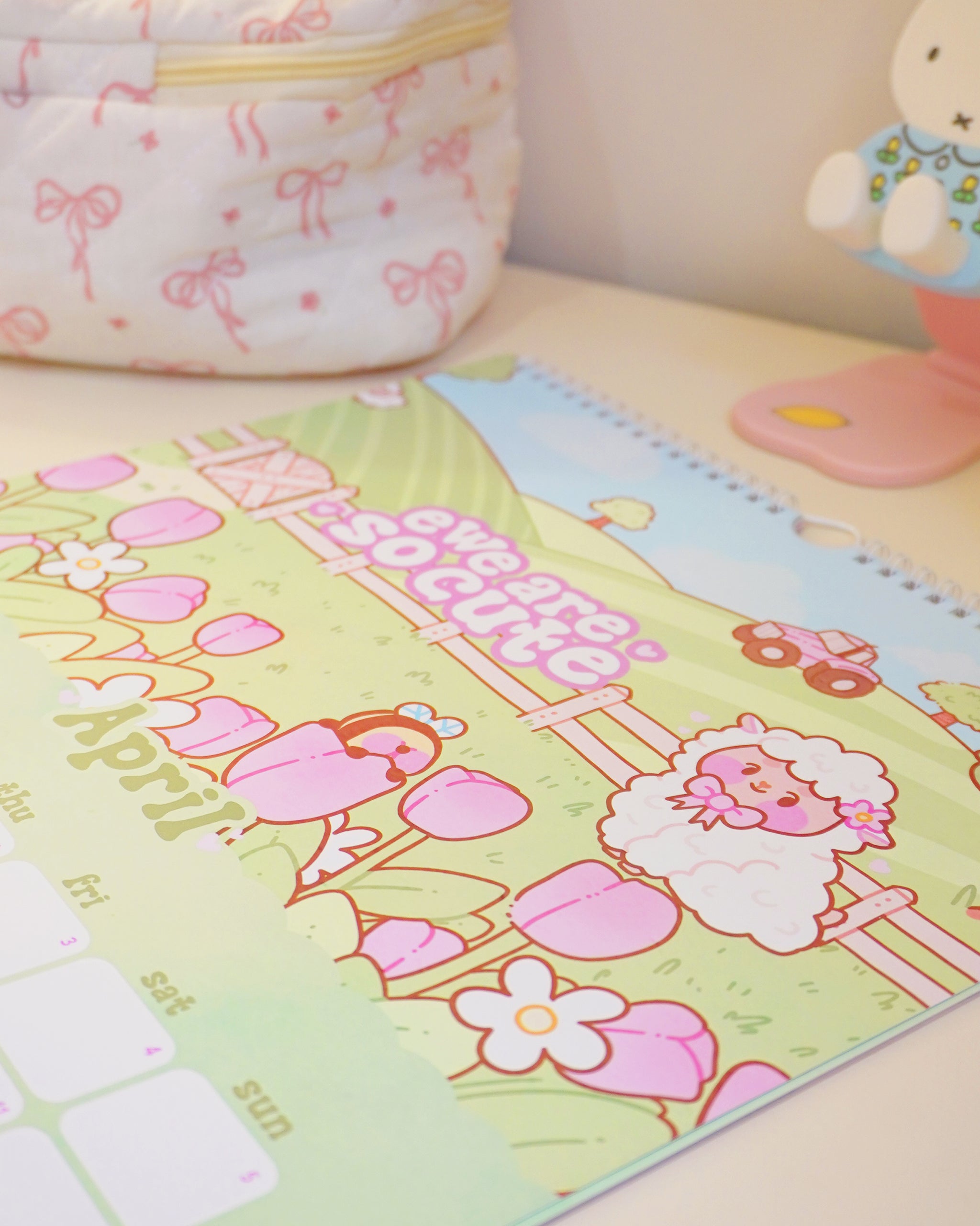 Perfect for fans of kawaii wall art, pastel home office decor, and cute character design, this illustrated calendar transforms everyday planning into something magical. It’s both a cute desk accessory and a whimsical wall art piece — ideal for your studio, creative space, or cosy corner.