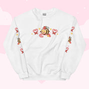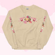 Celebrate the holiday season in cosy, kawaii style with this Candy Cane Lane Christmas jumper, featuring Bumblebutt the bumblebee riding a candy cane in a Santa hat! 🎅 Flanked by candy cane hearts and matching sleeve details, this festive winter sweater is perfect for holiday gatherings, chilly days, or spreading Christmas cheer. Made with air-jet spun yarn for extra softness, its pre-shrunk classic fit ensures long-lasting comfort. ❄️❤️