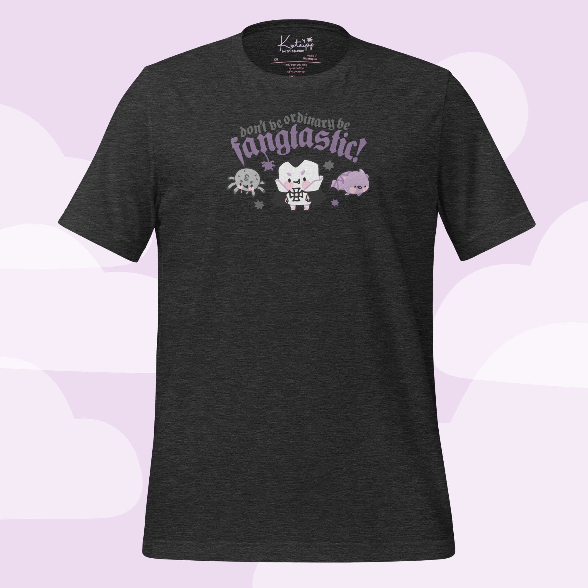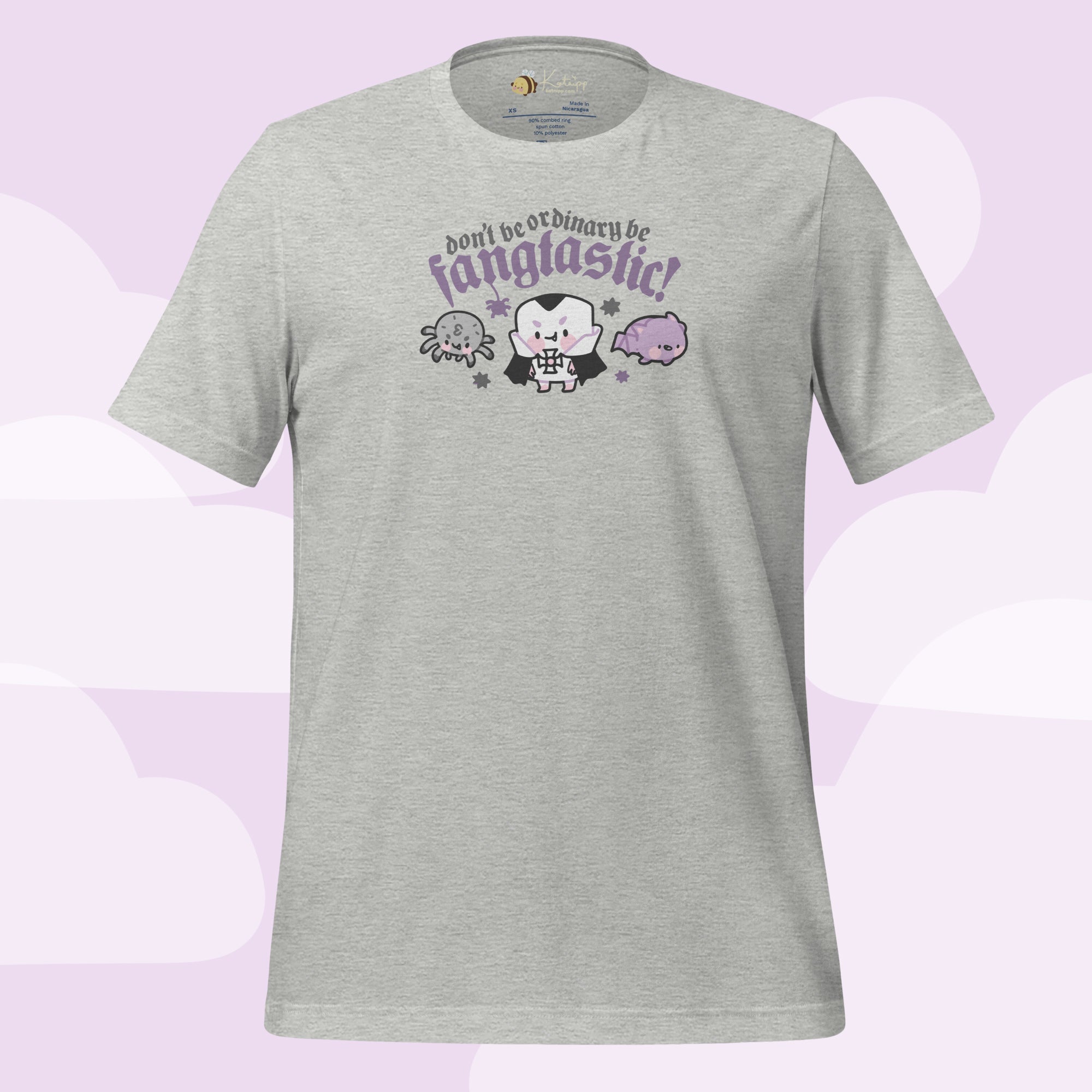 Step into spooky season in style with the “Don’t Be Ordinary, Be Fangtastic” T-Shirt from the Vampies Vault collection! Featuring Vampire Marshie, Fluffy the Spider, and Bartholomew the Bat, this kawaii gothic tee is perfect for Halloween lovers, gothic fashion fans, and anyone who adores cute spooky vibes. Crafted from soft, breathable Bella + Canvas fabric, this lightweight T-shirt offers all-day comfort and just the right amount of stretch. 🎃✨