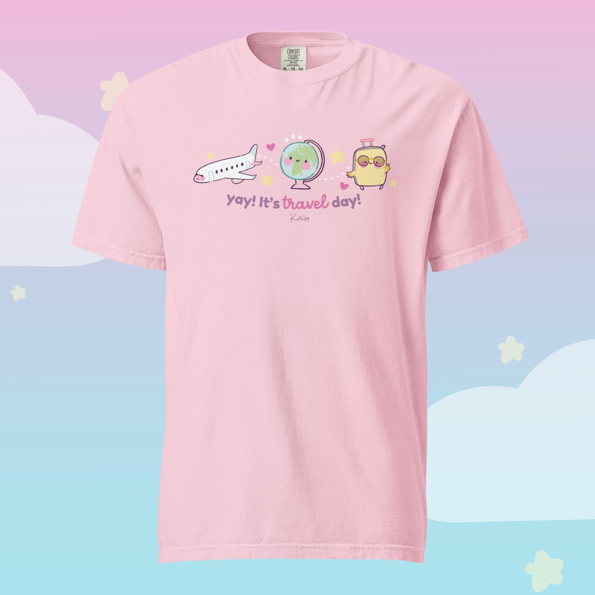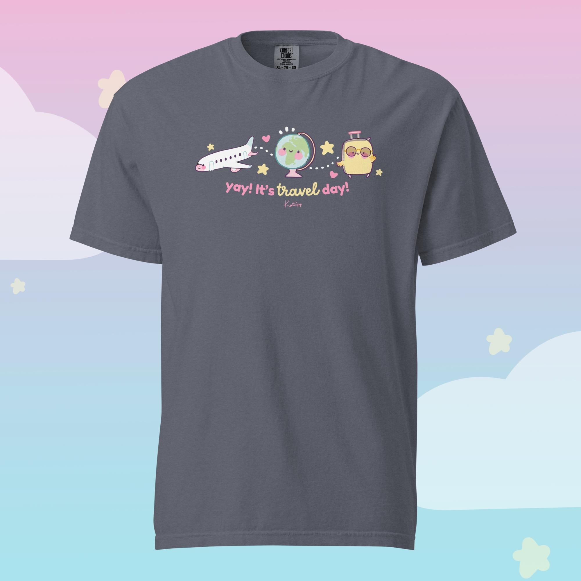 Yay! It’s Travel Day! Premium Heavyweight T-Shirt | Kawaii Airport Tee | Wanderlust Graphic Shirt | Katnipp Travel Apparel