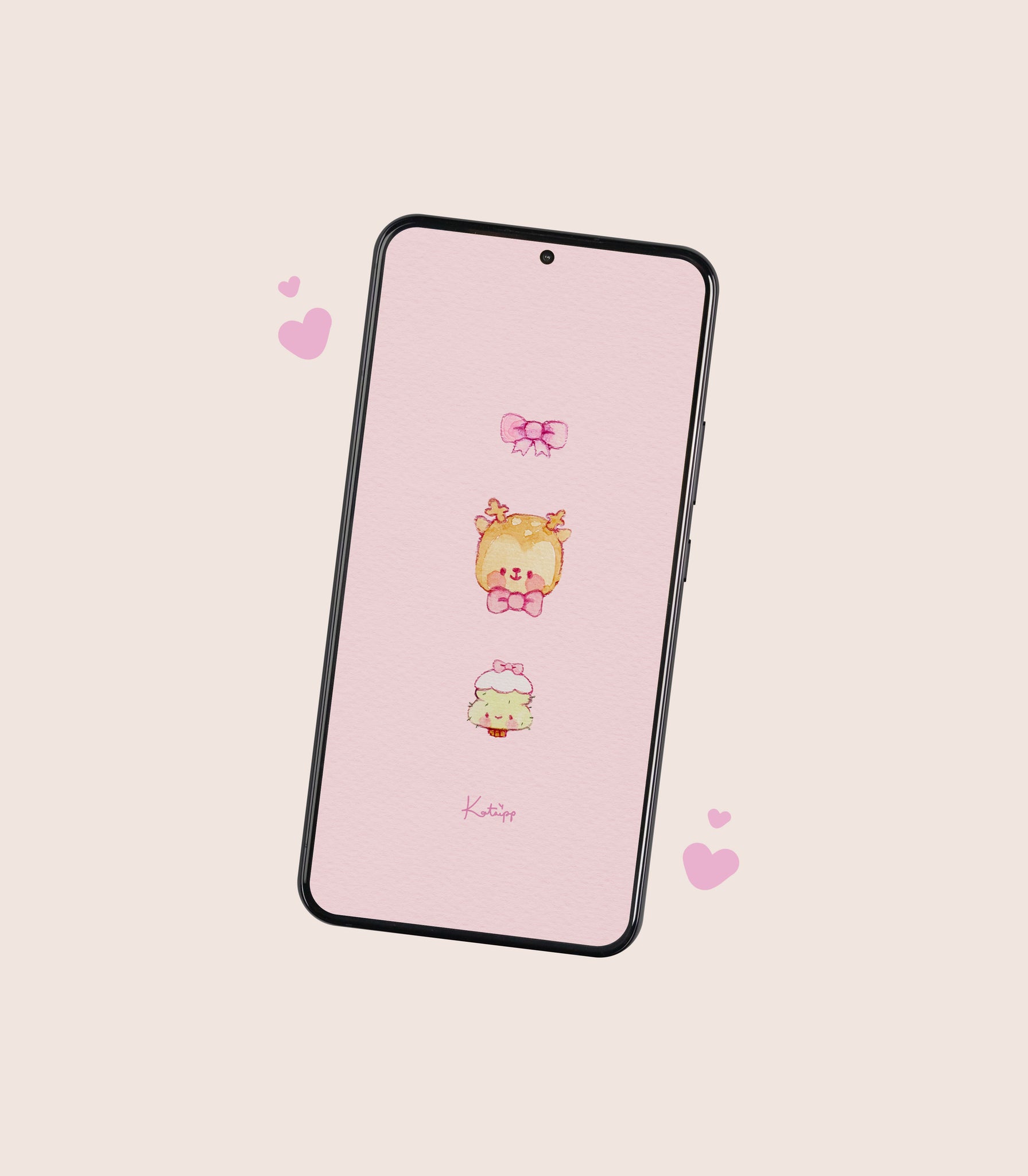Wrap your devices in the sweetest cottage-core magic with this cosy pastel pink Christmas digital wallpaper set featuring Cinnamon the Deer, Sprinkle Spruce the Christmas Tree, and a charming coquette pink bow. Perfect for fans of soft kawaii art, whimsical winter aesthetics, and all things cosy and pastel.