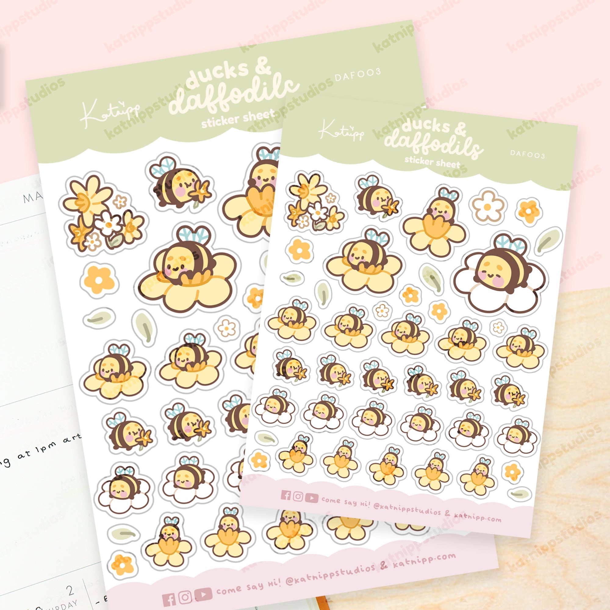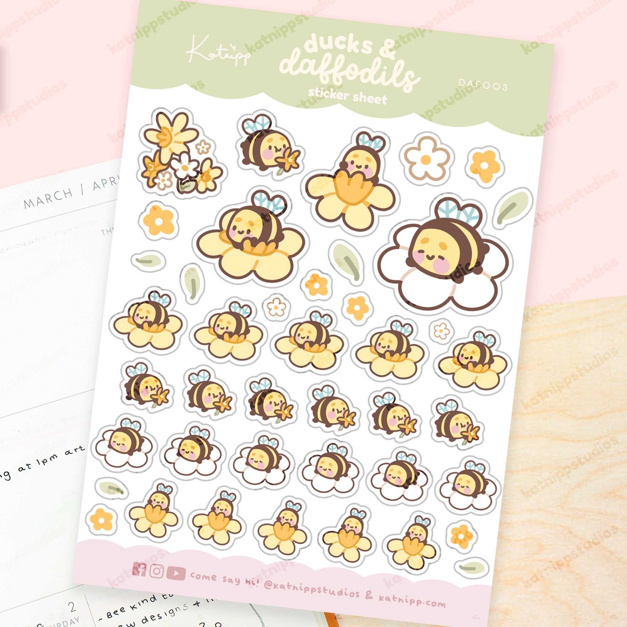 Bumblebutt A6 Planner Stickers | Kawaii Bee Spring Flower Sticker Sheet | DAF003