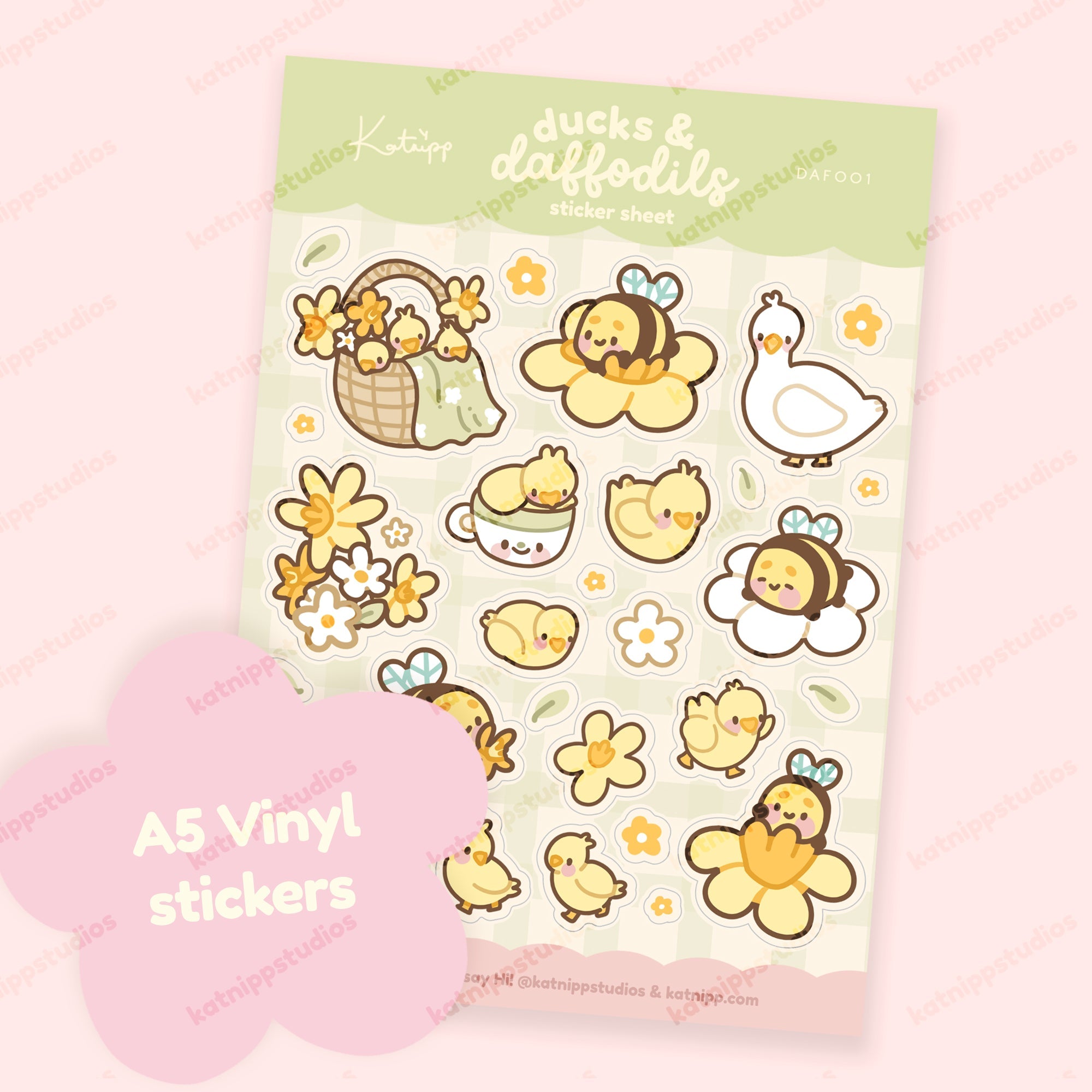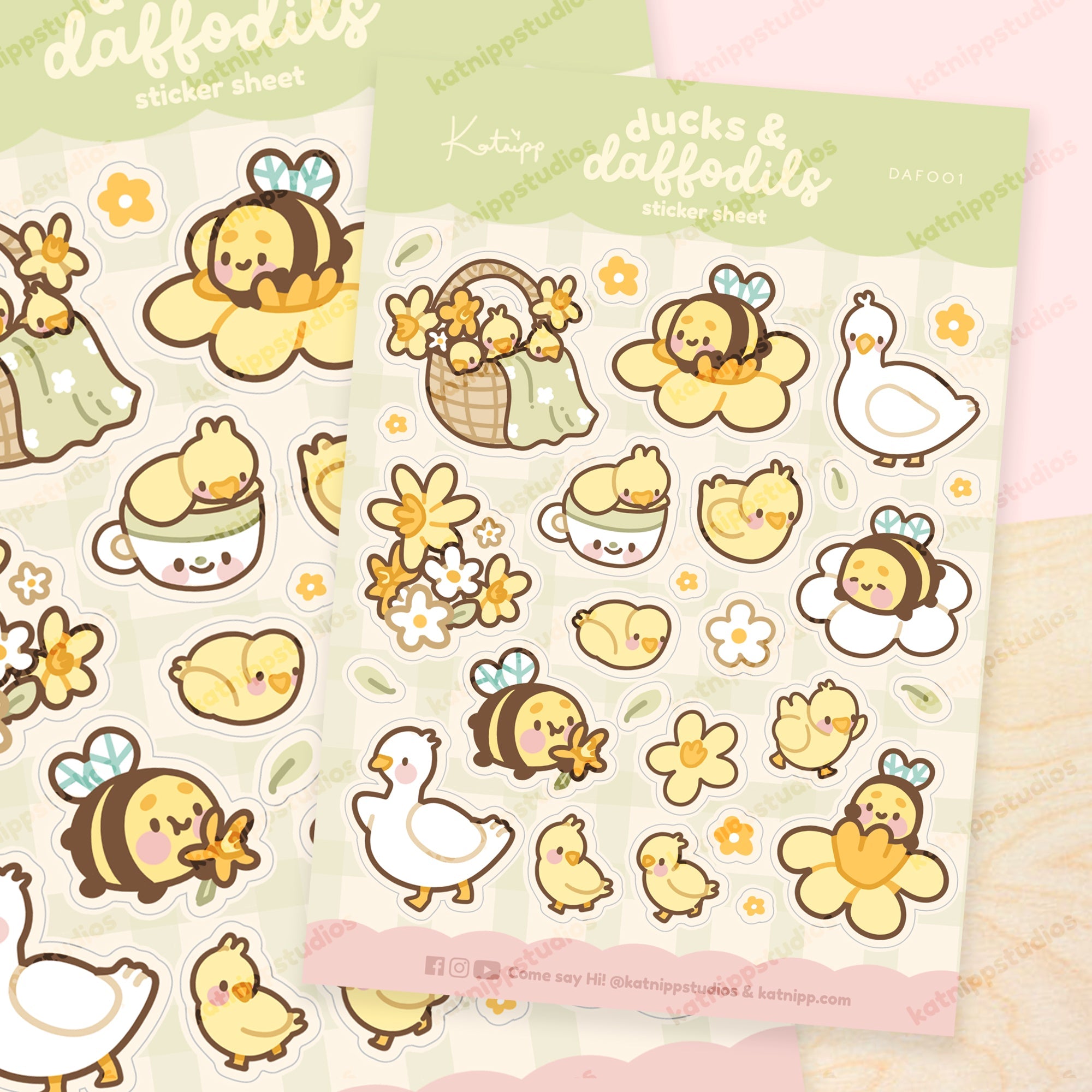 Spring Ducks & Daffodils Sticker Sheet | Bumblebutt Kawaii A5 Stickers | DAF001