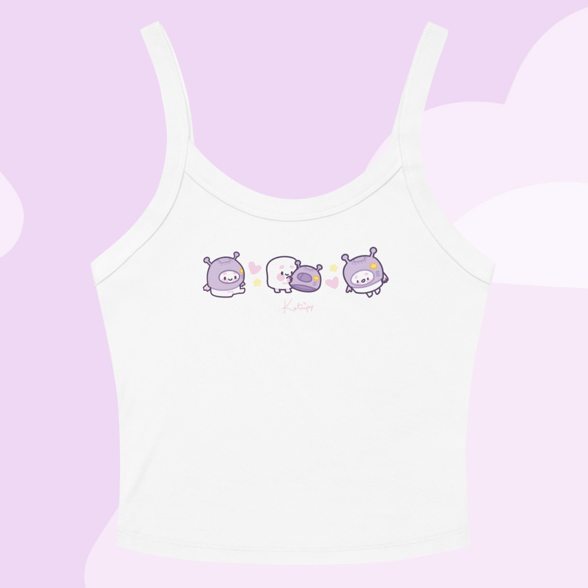 Featuring Marshie the marshmallow in his space helmet, striking three adorable poses alongside the Katnipp logo, this dreamy tank is a must-have for space lovers and kawaii fashion fans alike.