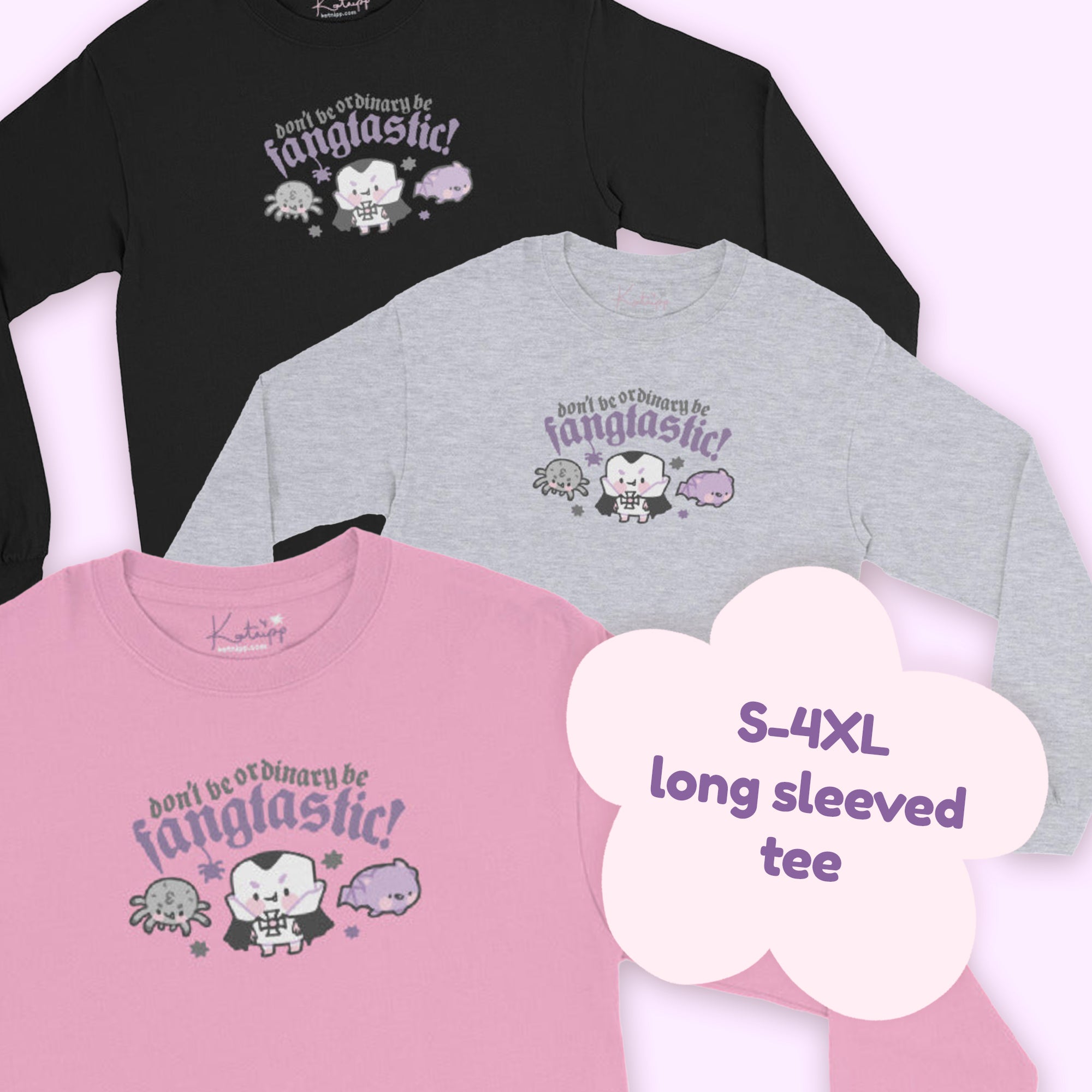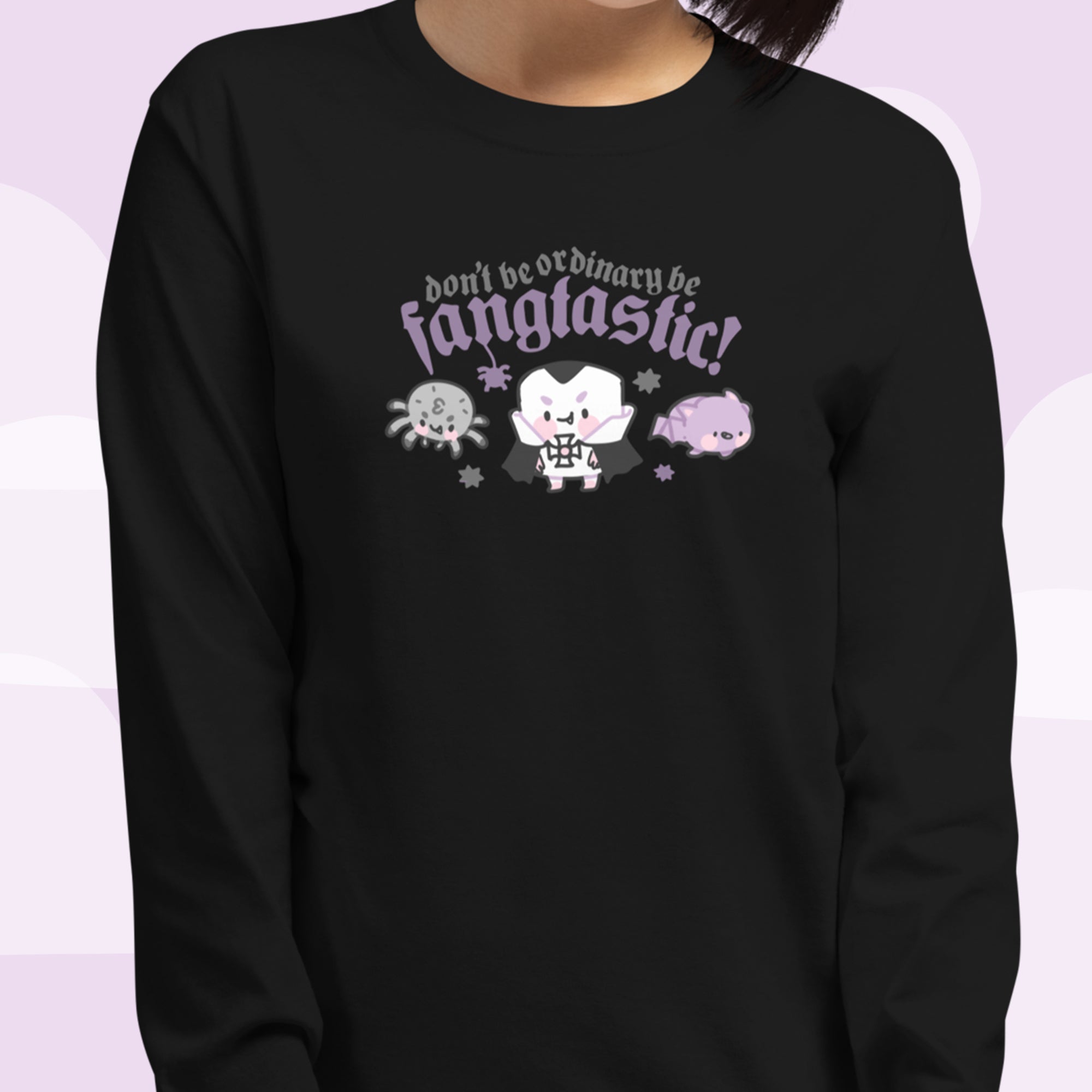 Fangtastic Gothic Halloween Long Sleeve T-Shirt | Kawaii Spooky Vampire Bat Tee