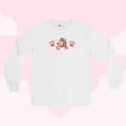Embrace the holiday spirit with this Candy Cane Lane Christmas long sleeve shirt, featuring Bumblebutt the bumblebee riding a candy cane in a festive Santa hat! 🎅 Surrounded by candy cane hearts, this kawaii Christmas shirt brings warmth and charm to your winter wardrobe. Made from 100% soft cotton, its pre-shrunk classic fit ensures comfort for seasonal gatherings, cosy days at home, or spreading festive cheer all winter long. ❄️❤️
